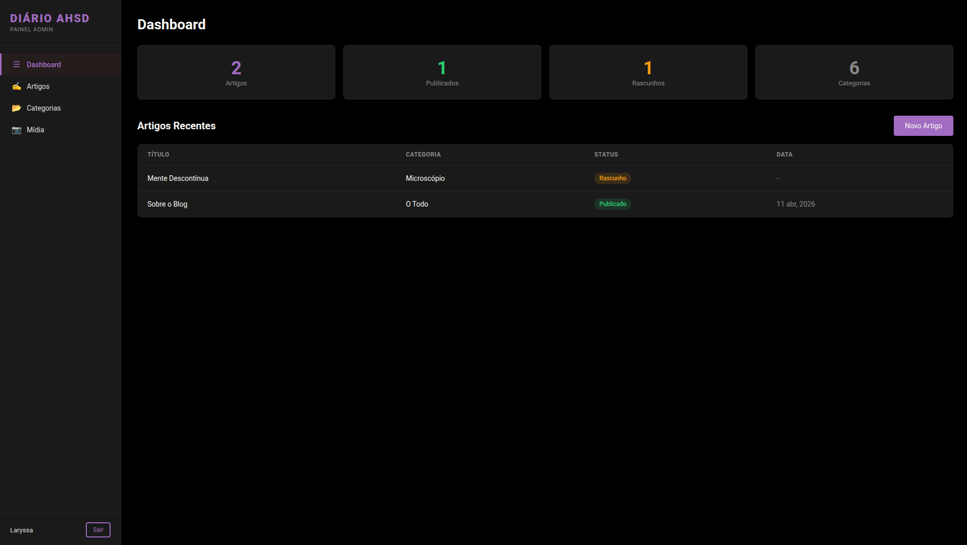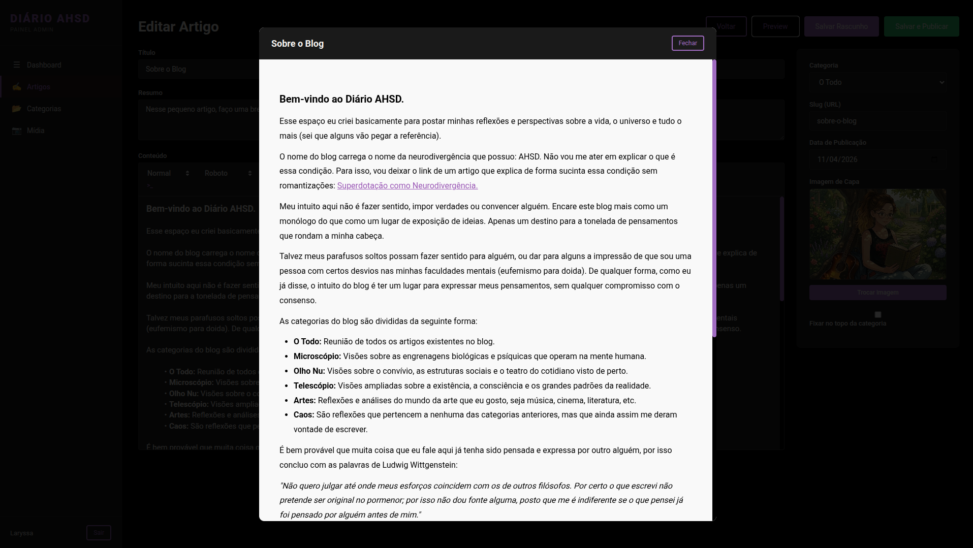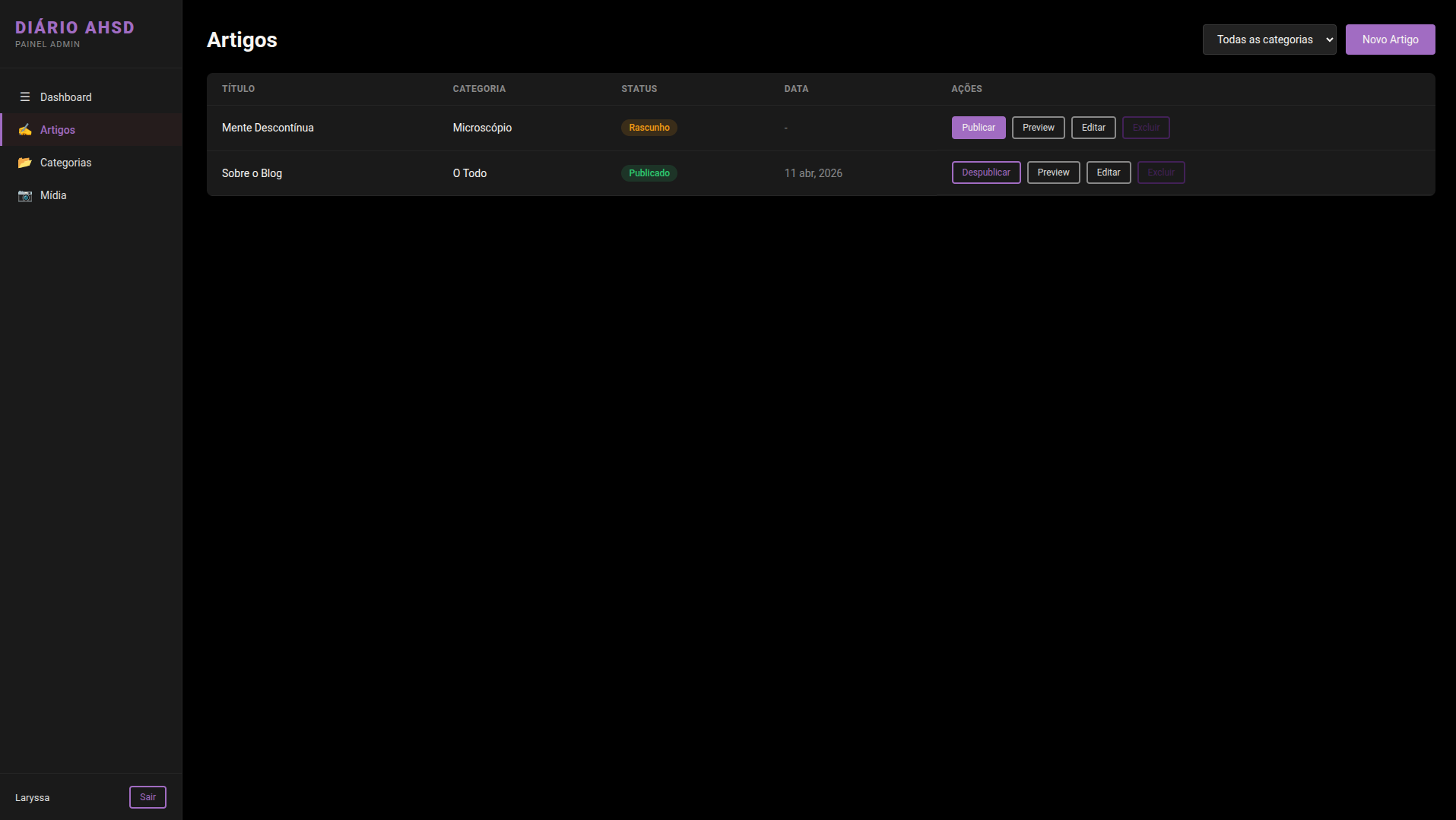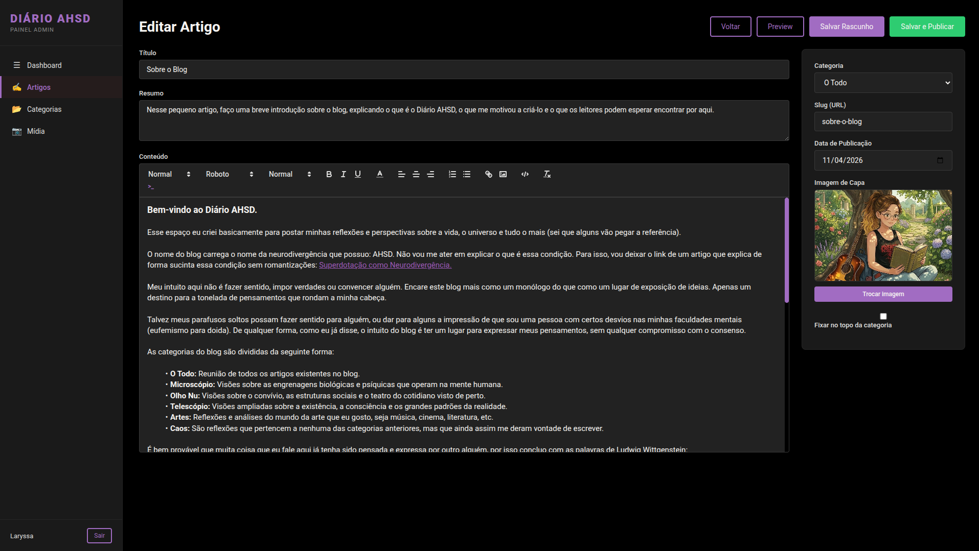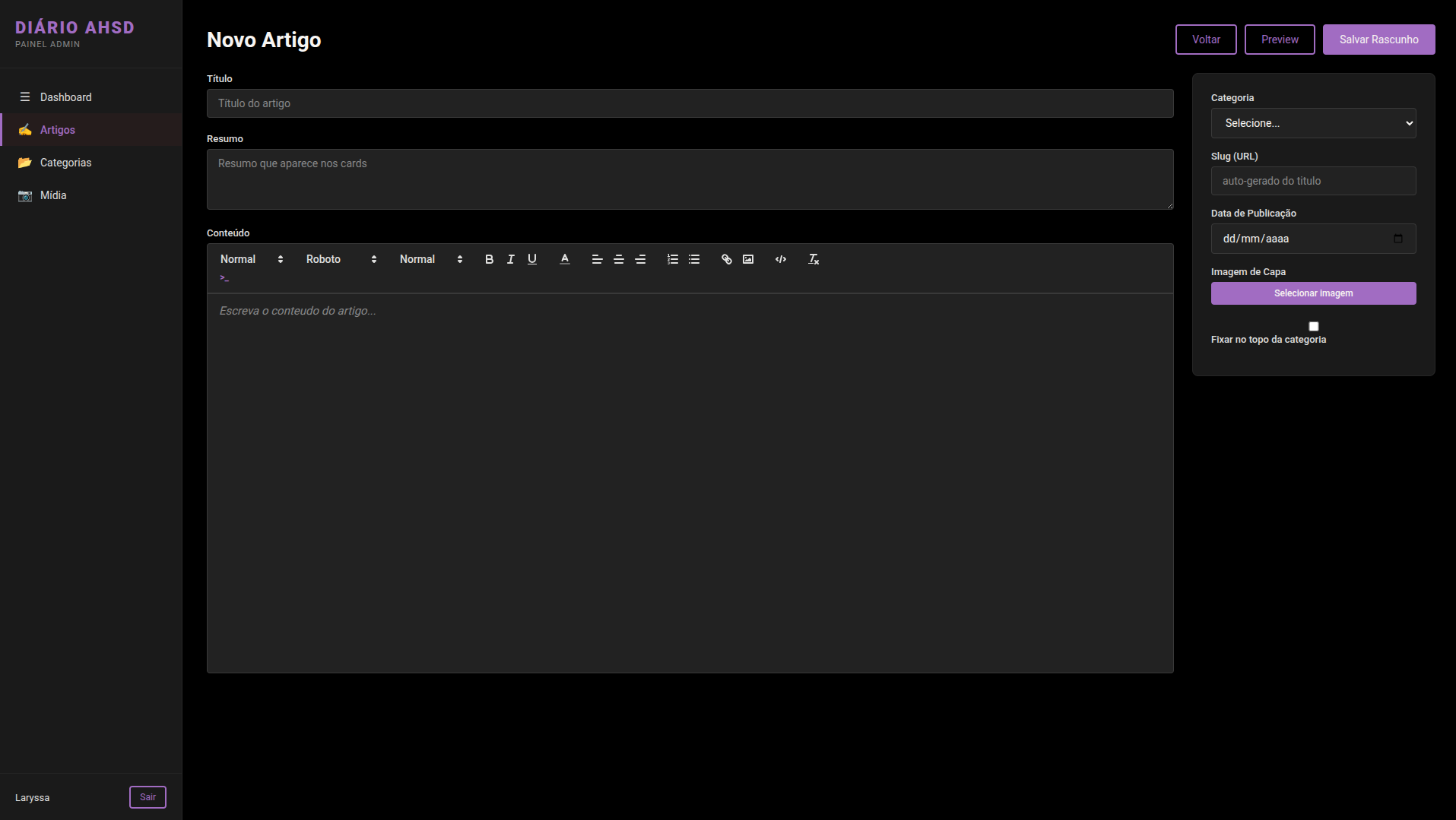 Descrição: Sistema de gerenciamento de conteúdo (CMS) desenvolvido com Angular e SpringBoot para o blog Diário AHSD.